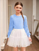 Girl Pretty Tees Shirts: This Girls long sleeve shirts with mesh sheer puff sleeve and unique cuffs and swiss dots design brings a different visual effect to this girls shirt,make your girl more ladylike and elegance