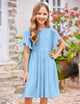 - Material: Lightweight, flowy, comfy but do not see through. This Cold Shoulder Dress is made of high-quality and high-density chiffon. The fabric itself is not stretchy, but the elastic-smocked waist dress will fit your girl's body well. This casual dress will flow when she walks and feels comfy across her skin smooth.