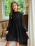 Girls Swiss Dot Flared Sleeve Ruffle Collar Dress