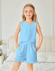 - Design: Short sleeve pajamas top features a cute round neck, an button at the back collar. Elastic waist pj pants complete with pockets, which can keep kids small treasures safe in the pockets while playing or on a mini - adventure during a sleepover