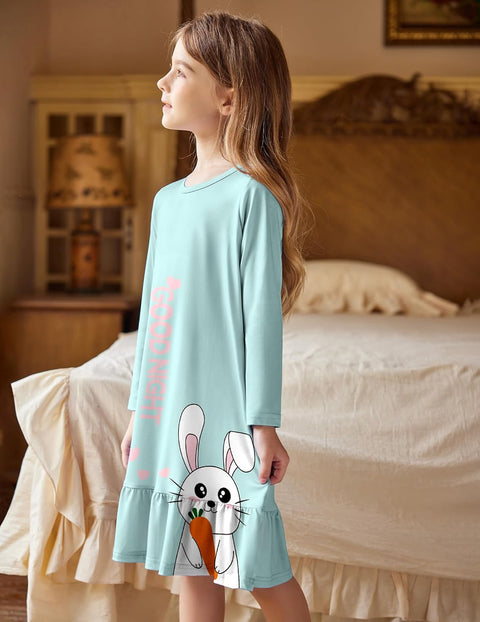 Arshiner Girls' Sleepwear Long Sleeve Cute Nightie Pajama Dress